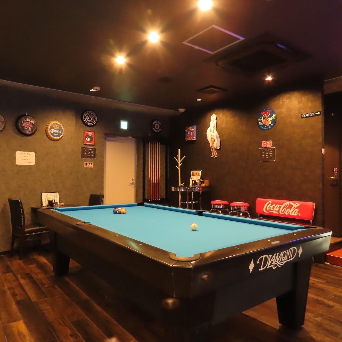 当店では、DIAMONDのビリヤード台を完備しております。リラックスした雰囲気の中で、初心者から上級者まで、皆様にお楽しみいただける空間です。友人や仲間と一緒に、ドリンクやフードを楽しみながらビリヤードを存分に満喫できます。ビリヤードを楽しむ合間に、当店自慢のこだわりのメニューもご堪能くださいませ。